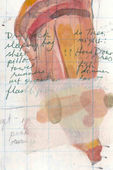 The Where I’m At Now postcard cycles begin with each of the five artists creating five postcards based on a certain idea they are currently exploring in their home studios. Each artist keeps one card and mails one card to each of the other artists in the group. Generally each artist responds to all the cards as they receive them before sending them on to another artist, until all five artists have added visual information by adapting their mark-making to the compositional direction taken by previous artists. On occasion an artist may decide that an image is complete with only some of the artists’ interventions present. Individual card titles indicate the initials of the artists in the order the postcard travelled through the group.